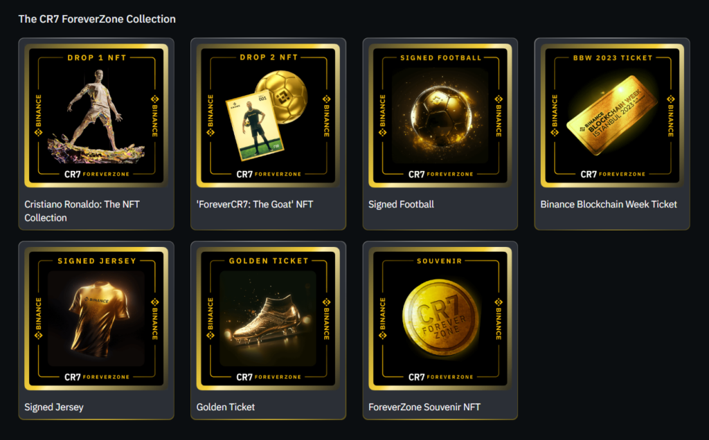 Los poseedores de Cristiano Ronaldo NFT también serán compensados ​​con NFT gratis de esta nueva promoción. Fuente: Binance