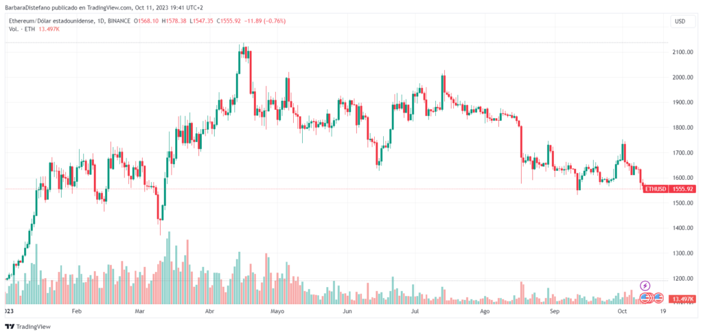 Esto sucede mientras ETH se encuentra actualmente en sus precios más bajos desde marzo, tal y como se refleja en el gráfico. Por otro lado, BTC ha registrado una recuperación en el último mes desde los niveles más bajos que tuvo en este período en USD 25.000. Y en lo que va de año registrar una apreciación del 30% y 65% respectivamente.