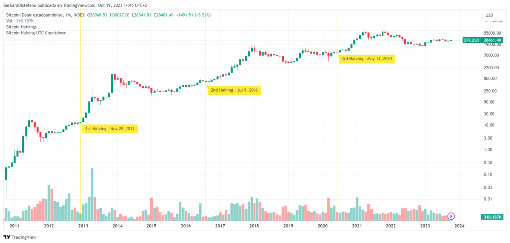 Históricamente, las mayores ganancias de bitcoin se producen después de cada reducción a la mitad.