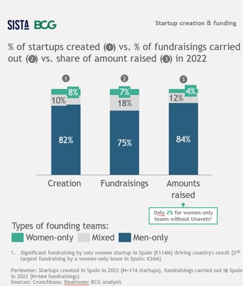 Es cierto que en España, como destaca el estudio de BCG y SISTA, hay avances en este aspecto y las mujeres están demostrando que pueden alcanzar un gran éxito como emprendedoras trabajando tanto solas como en colaboración con otras mujeres. Sin embargo, aún persiste una importante brecha de género a la hora de crear una startup y obtener financiación.