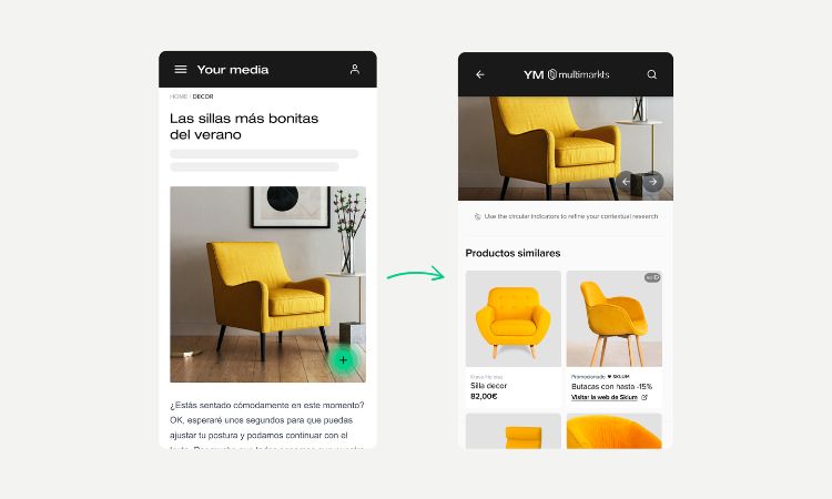 Multimercados Dispone de una tecnología contextual basada en Inteligencia Artificial con la que crea un todo ecosistema visual de forma automatizada y sin coste para el medio ambiente para que sus lectores puedan navegar y divertirse visualizando referencias y encontrando productos y servicios asociados en lo que ha denominado “mercados visuales”. Multimarkts AI identifica imágenes y vídeos en el contenido web y ofrece espacios de compra personalizados y personalizables para todos los editores del mundo en función de la similitud de imágenes, sin utilizar cookies. De esta forma, la empresa convierte el repositorio de imágenes y vídeos de cualquier soporte en una oportunidad de venta para el lector.