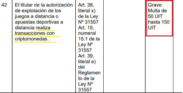 El gobierno peruano peleará con un máximo de 150 unidades tributarias, equivalente a más de USD 190.000, al operador de juegos y apuestas deportivas que realiza pagos con criptomonedas.
